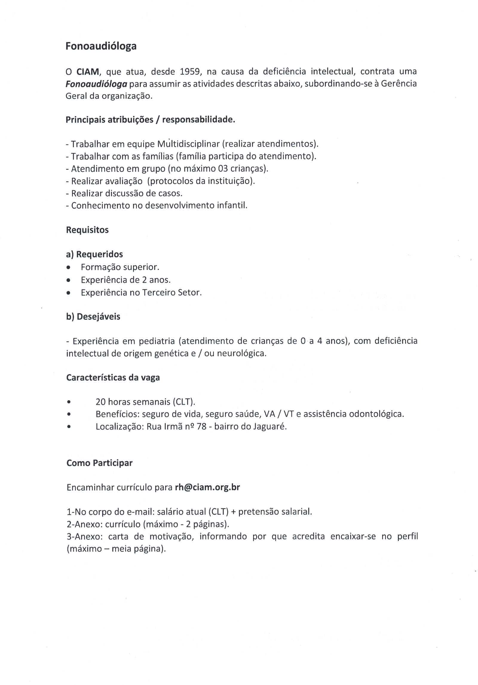 Graduaçao : Pedagogia e/ou Direito para Serviço de Medida Socioeducativo em Meio Aberto Diferencial conhecimento de ECA e SINASE. Conhecimento da legislação referente à política de Assistência Social e legislações,