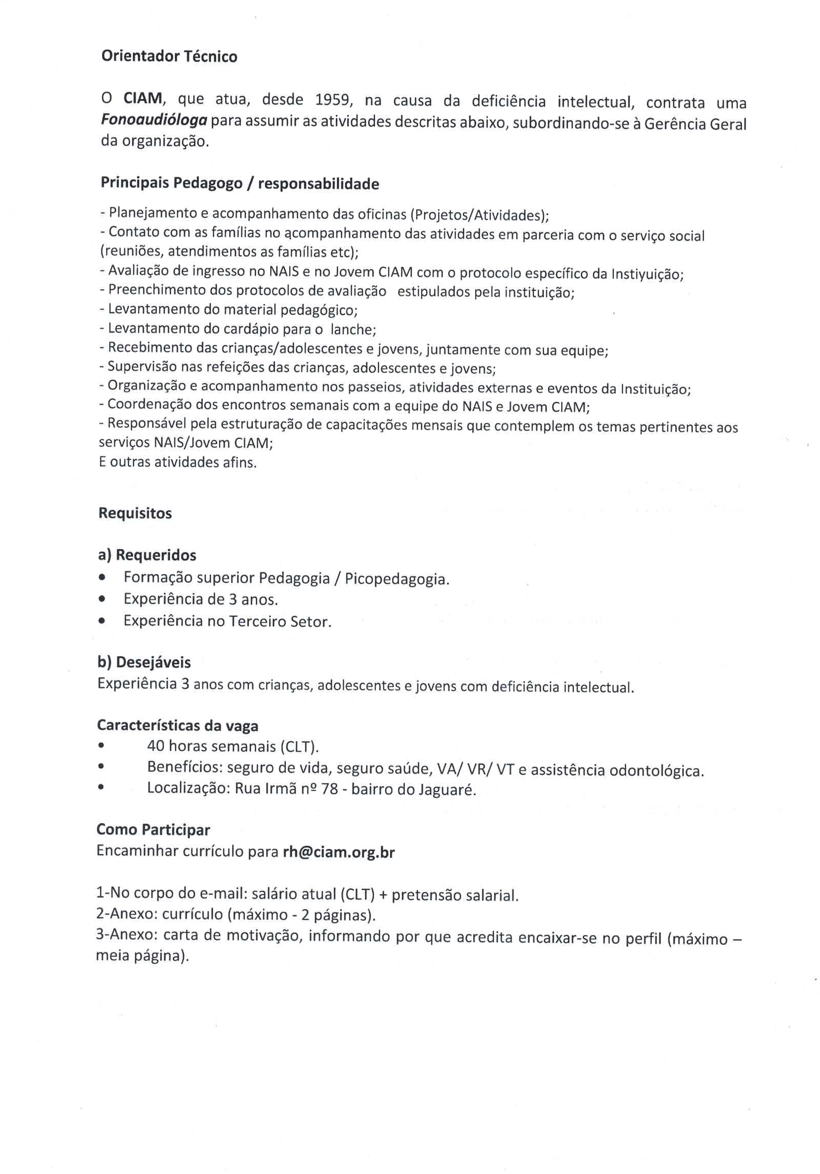 Orientador Socioeducativo – Vaga masculinaOrientador Socioeducativo – Vaga masculina