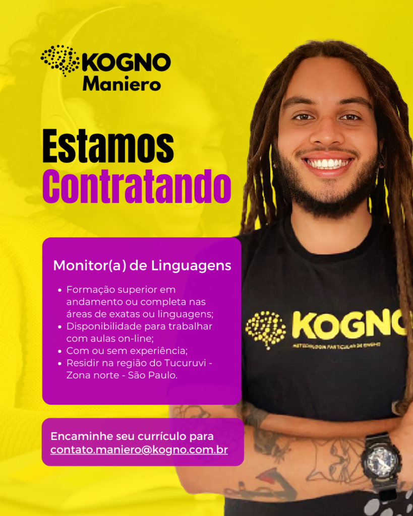OPORTUNIDADE! O Kogno está com vagas abertas para professores para o núcleo de LINGUAGENS na unidade Kogno Maniero Tucuruvi (São