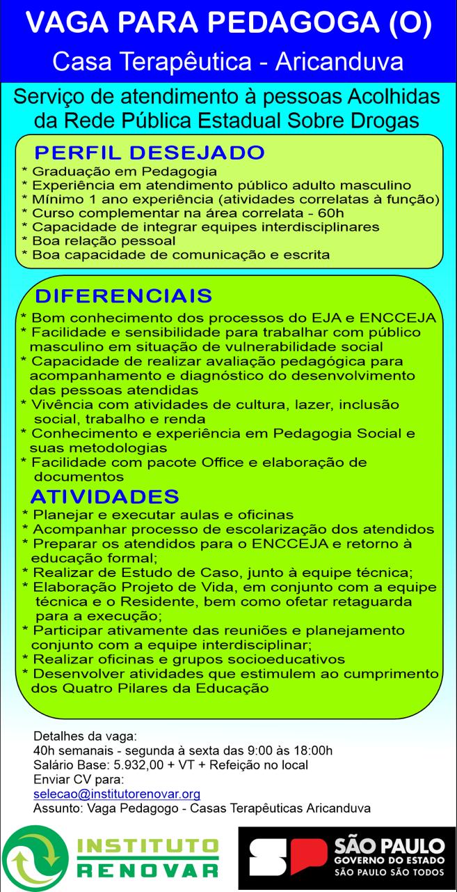 VAGA PEDAGOGO(a) CASA TERAPÊUTICAVAGA PEDAGOGO(a) CASA TERAPÊUTICA