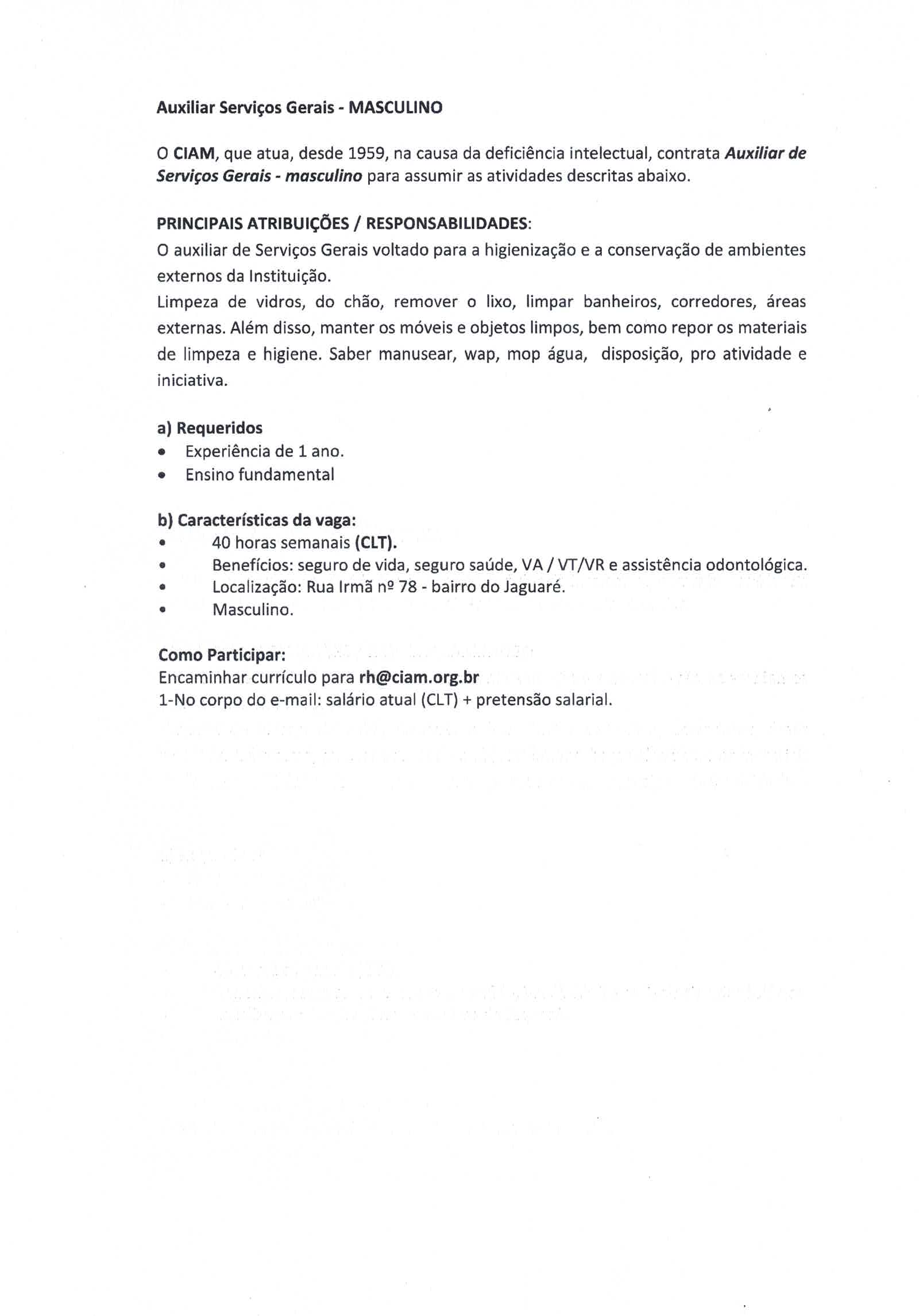 Auxiliar Serviços Gerais – MasculinoAuxiliar Serviços Gerais – Masculino
